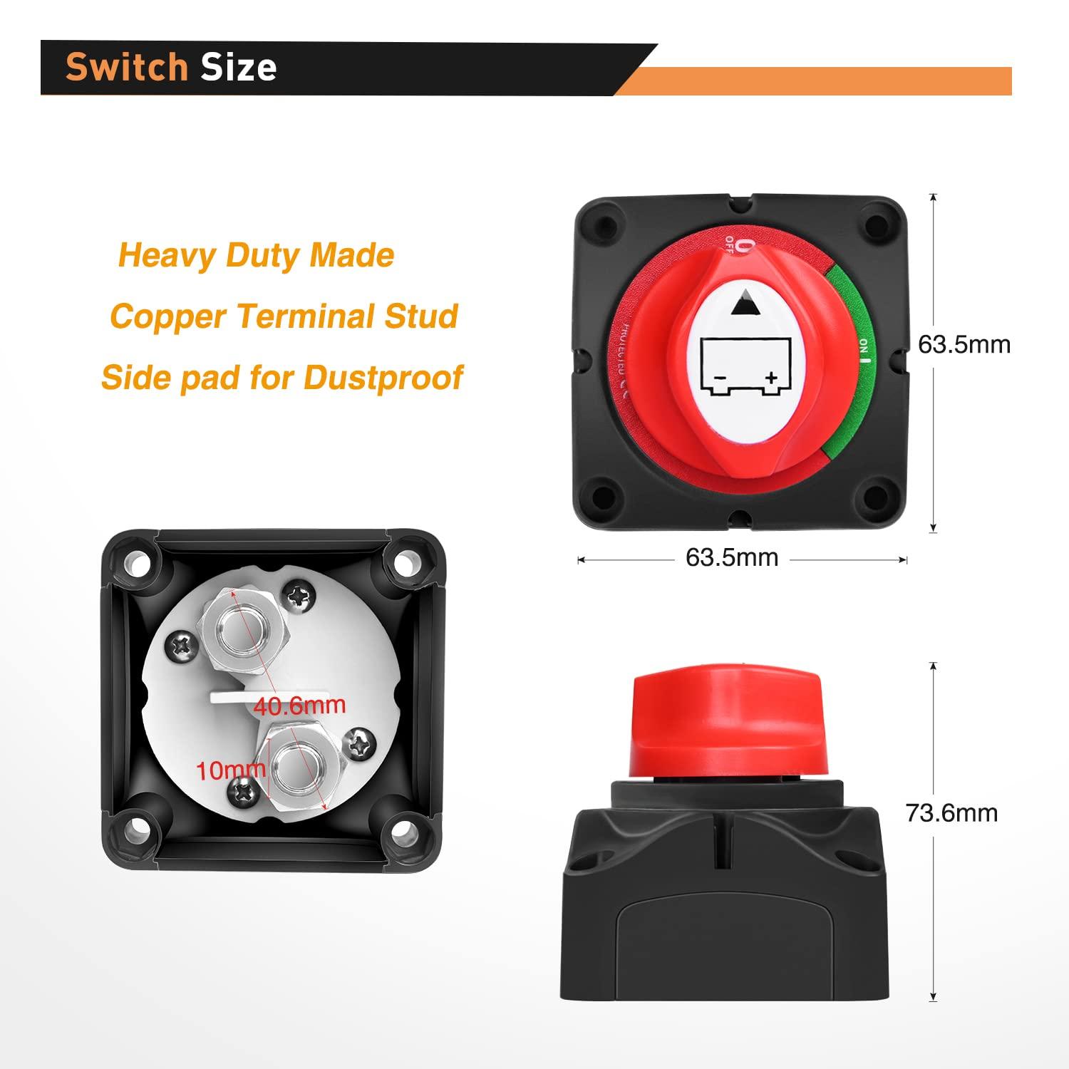 Compatible: used for 12 – 48VDC systems to isolate and secure the electrical system, can stand alone or be locked together with other switch.Widely used for cars, marine boats, RVs, campers, travel trailers, trucks, ATVs, UTVs, battery banks and other devices.