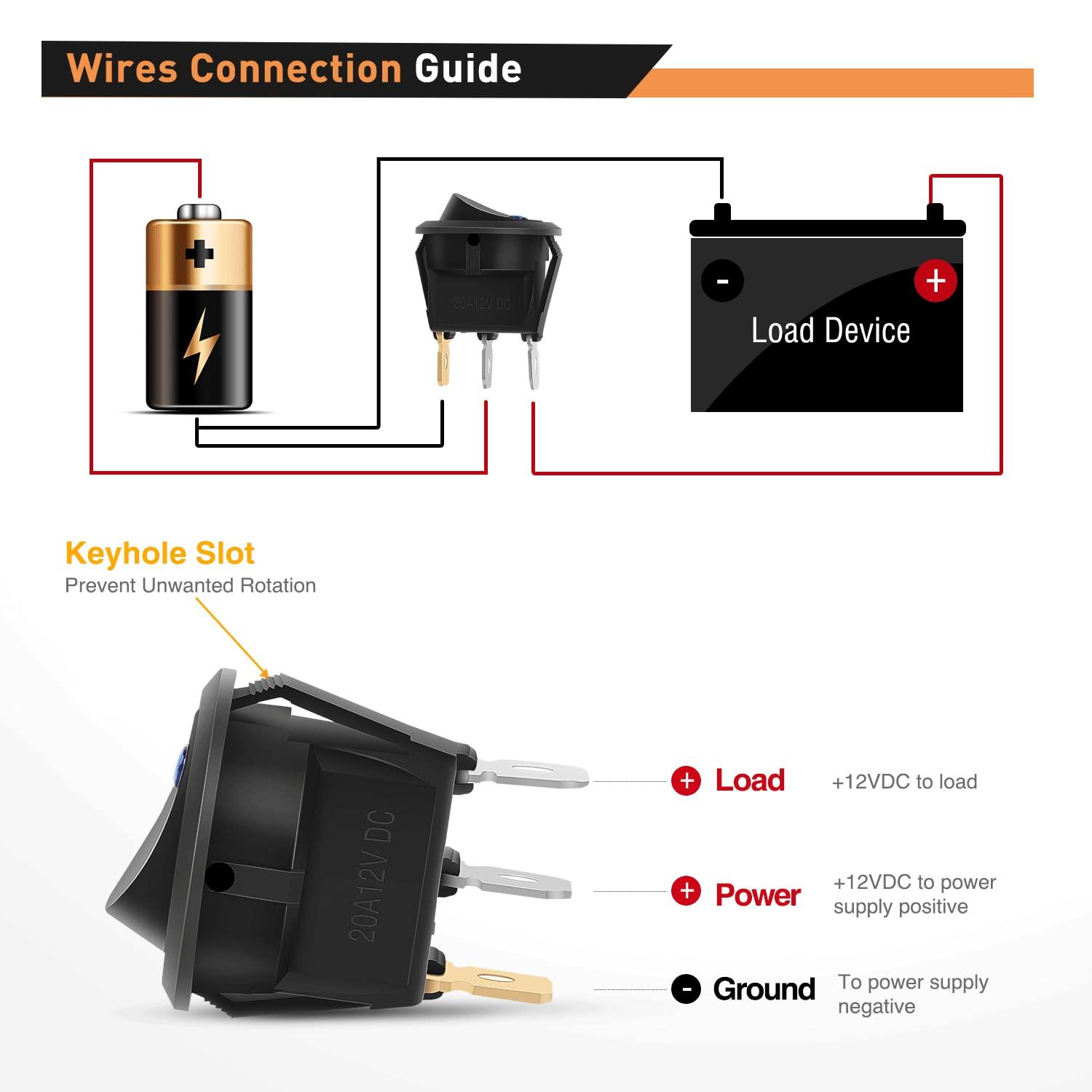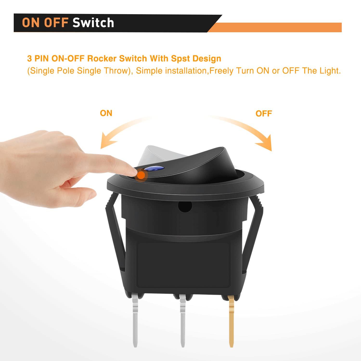 Perfect Design: Designed to connect and disconnect a DC12V 20A electrical circuit at will, SPST: ON-OFF control; 2 pole design (On/Off), 3rd poles with LED to be connected to earth. Fluorescent lamps will be lighted up when the switch is turned on