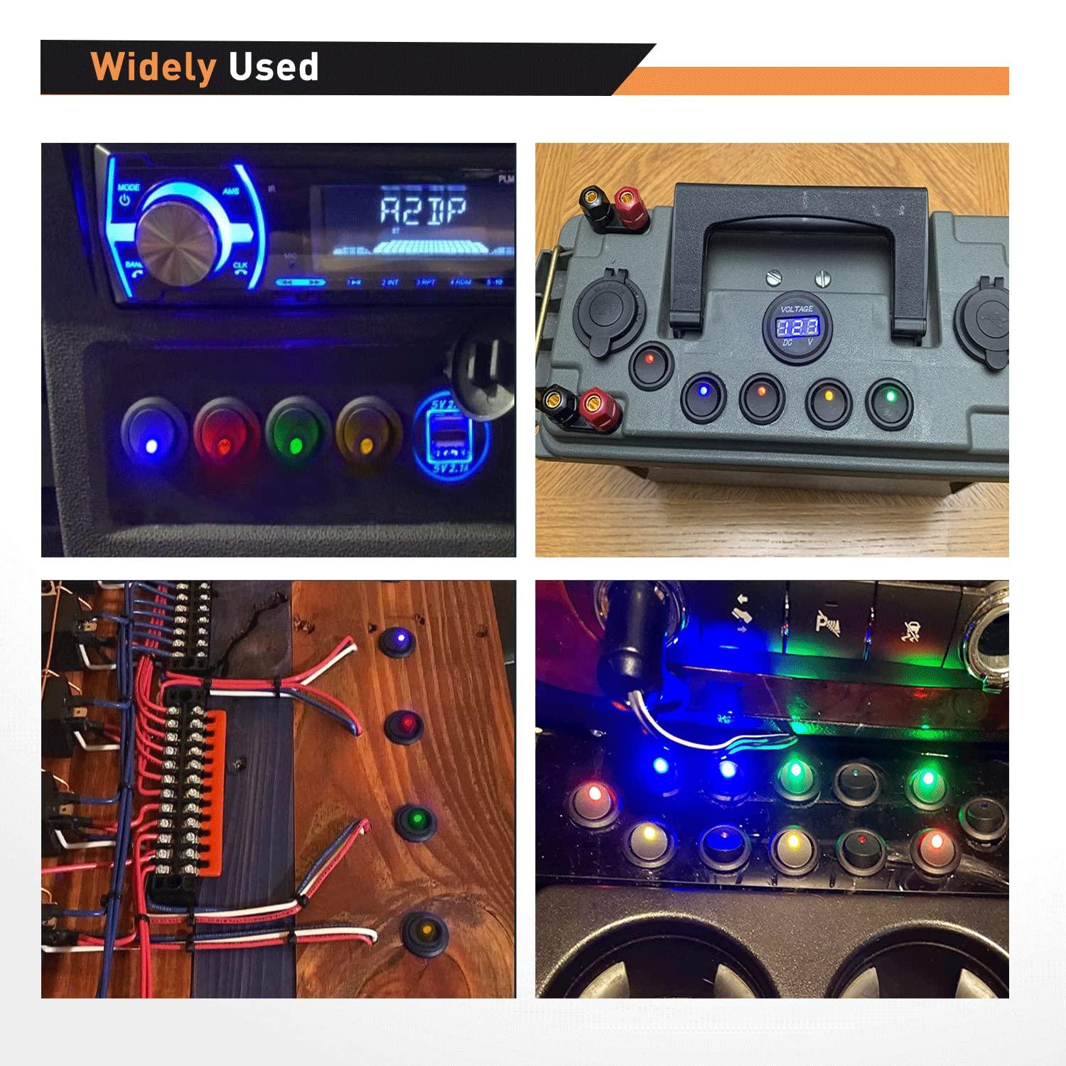 Package Includes: 12 x Round Toggle LED Switches (3 x Red LED; 3 x Blue LED; 3 x Green LED; 3 x Yellow LED SPST Switches). 2-Year Warranty by GOOACC.
