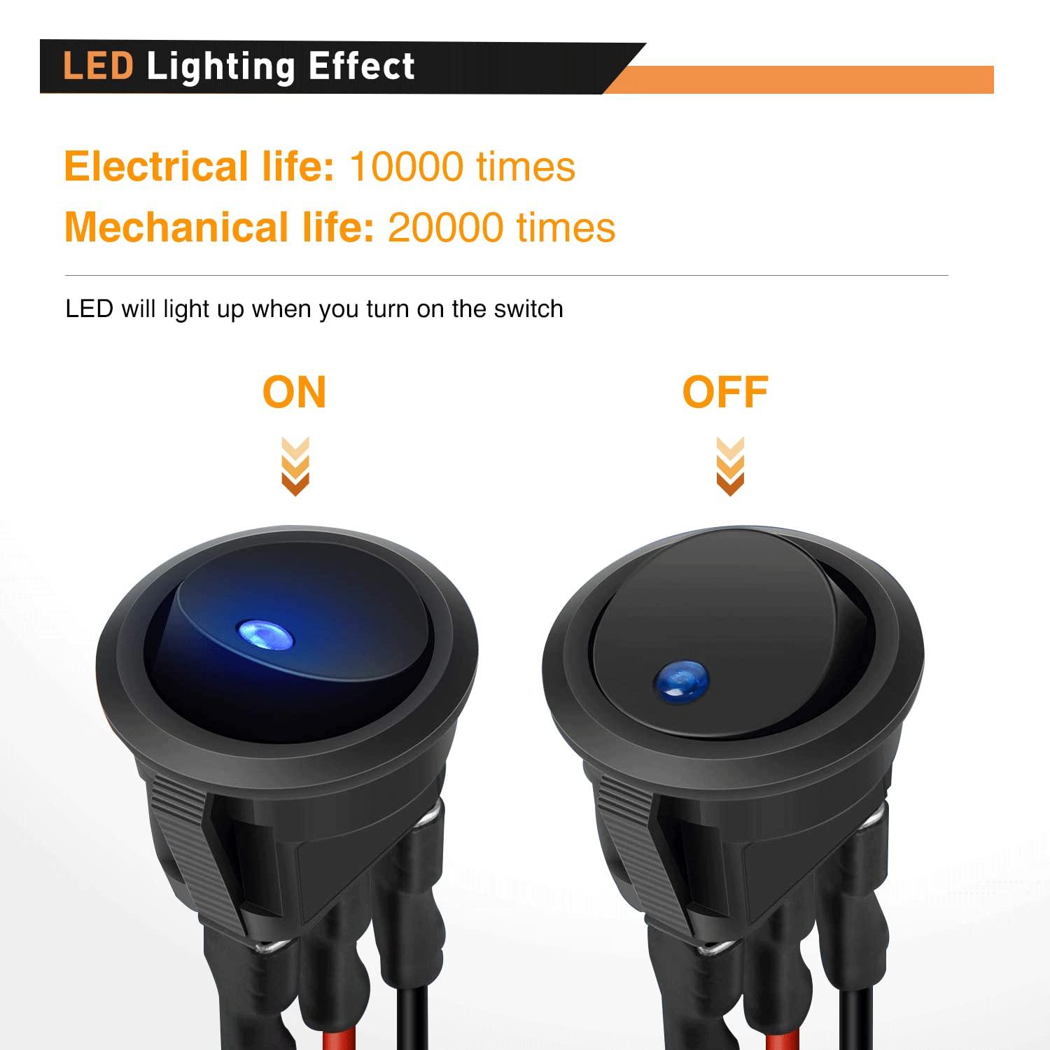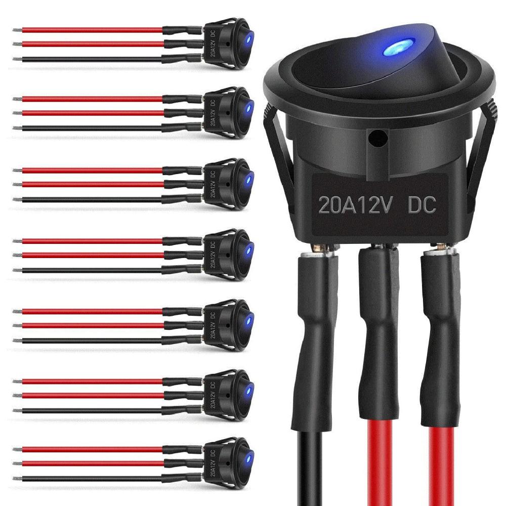 imageGOOACC 12PCS Round Toggle LED Switch DC12V 20A Rocker SPST Switch On Off Control Blue Green Yellow Red for Cars Trucks Boats RVs 2 Years Warranty8Pcs Switch Wiring Harness