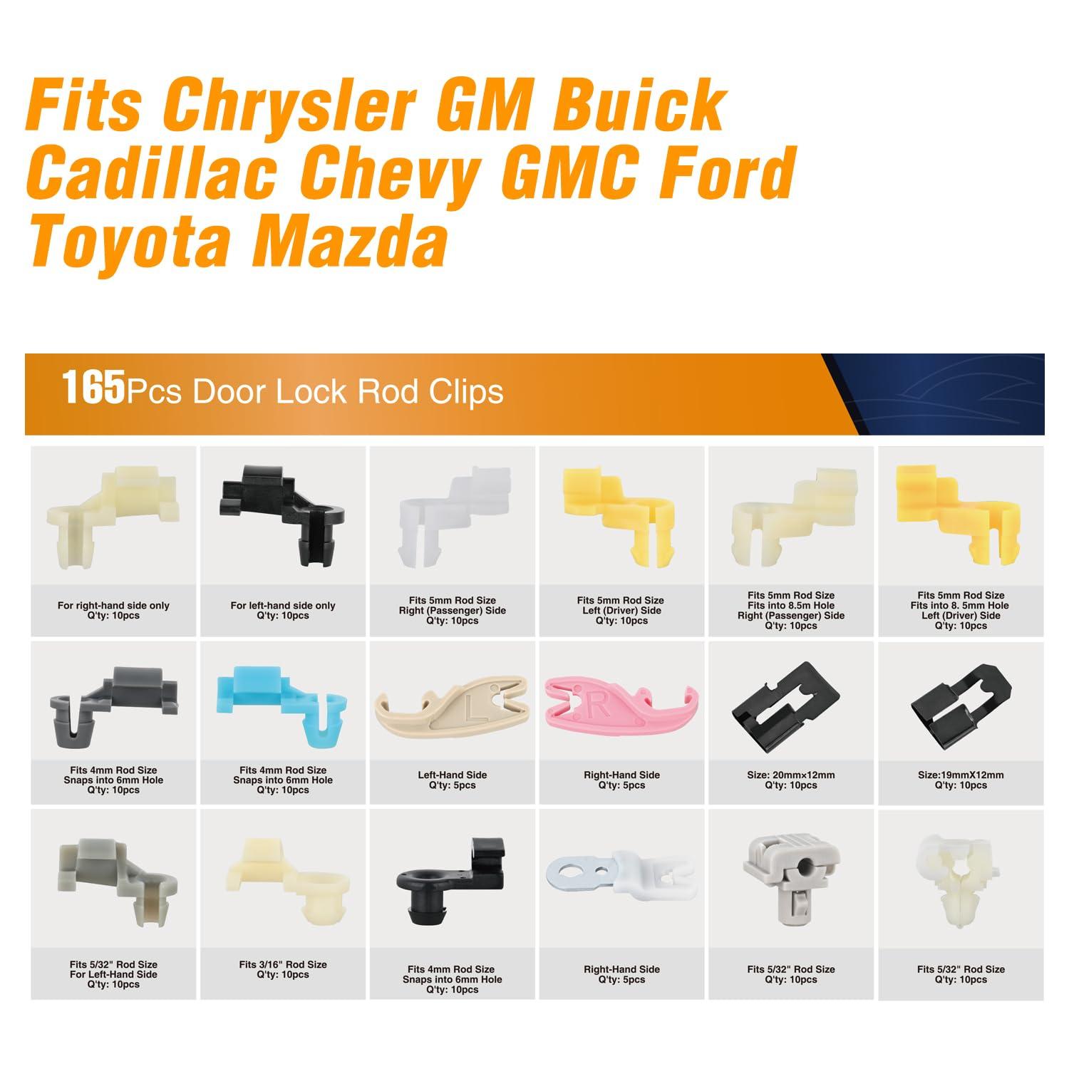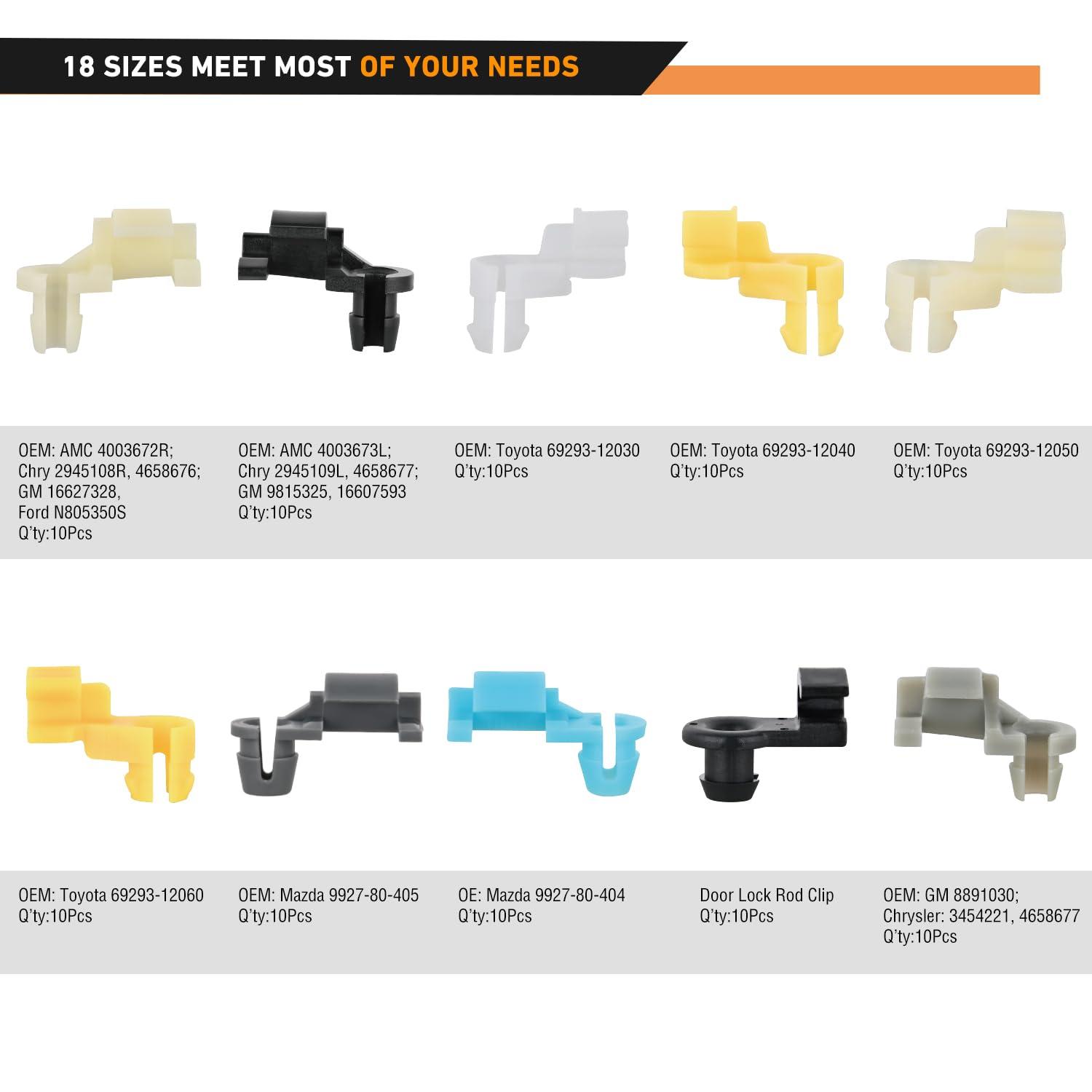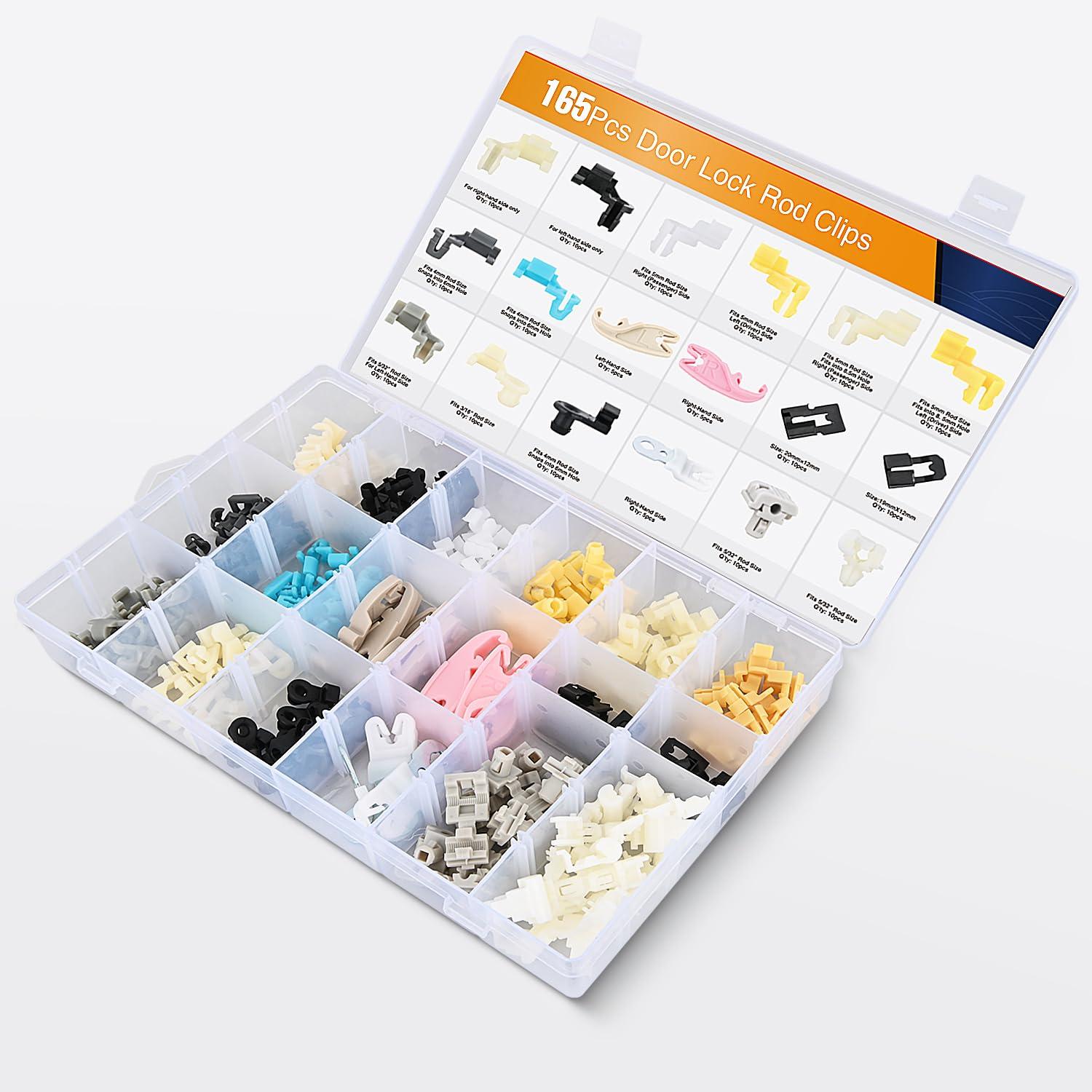 【Multiple Solutions】Includes 18 Sizes of Door Lock Rod Clips, total 165 Pieces. These Are Reliable Replacement for the Original Part That had Missing or Failed Due to Fatigue.