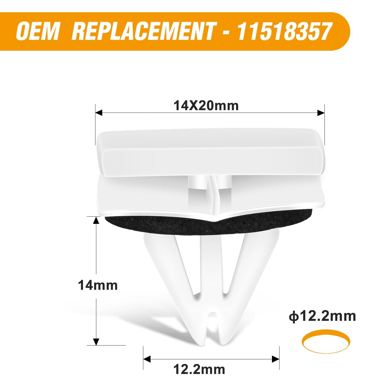 【Perfect Fit】- The same size and shape as the original clips, with a top head diameter: 14mm,top head diameter with extension: 21mm,bottom head diameter: 17mm,stem diameter: 10.8mm,stem length: 11mm